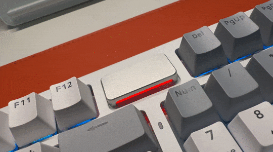 至于影响颜值的要素,另外就是键帽、键盘的配色了,这一点我个人觉得是键盘给人的第一视觉要素。我的这一把是「幻影机甲」的白灰蓝配色,我还挺喜欢的,属于稳重之余又有点活泼的风格。不知大家会选哪种配色,这把键盘有好几种配色也都不错。键帽都是高含量PBT材质,指尖触感不错。