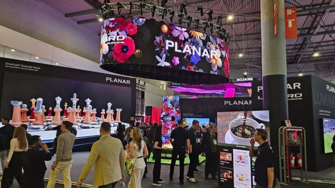 此外,利亚德旗下Planar品牌的多款COB技术产品集中亮相,包括0.7毫米像素间距的5K超宽屏、0.9毫米间距的8K巨型显示屏等,全面覆盖专业控制室、高端商业展示、数字标牌等多类应用场景,展现其以技术创新重塑行业应用范式的综合实力。