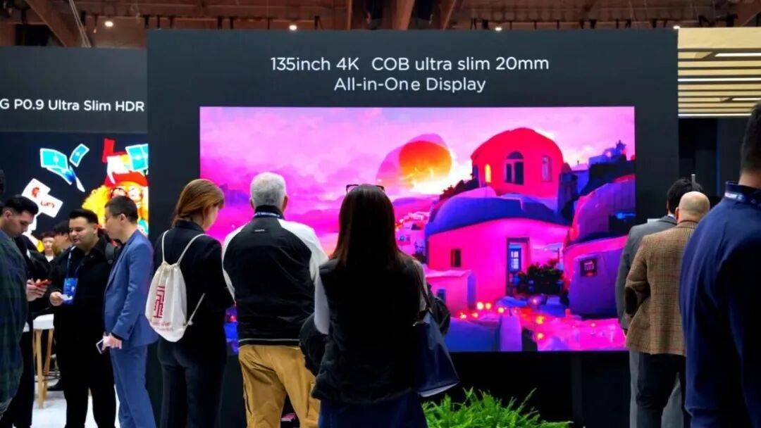 展台核心聚焦由α-MLED技术品牌赋能的高端显示解决方案,重新定义了MLED产品的性能标准。其中,采用COG技术的P0.9超薄HDR MicroLED显示屏成为焦点,其具备3000尼特超高亮度与出众HDR效果,并通过大幅减少拼接模组数量,将安装效率提升5倍。同台亮相的BYH Ultra P0.9 COB产品,凭借自研光学技术,在环境光下实现了20000:1的卓越对比度。135英寸4K COB超薄一体机则以99.4%极致屏占比与仅20毫米的纤薄机身,展现了顶尖的工业设计。全球首款支持2D/3D一键切换的GPR 3D COB直显屏,则为商业与专业应用提供了全新可能。